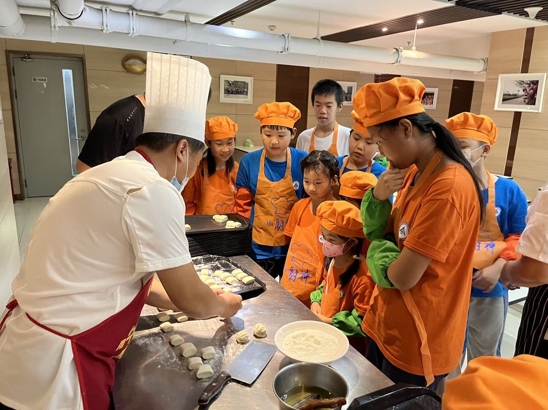 小学生夏令营课外活动丰富多彩,室内课程安排同样精彩纷呈, “空气动力挺”“平衡机器人”“3D全息投影”等精心设计的实验课程唤起了小朋友们探索科学世界的浓厚兴趣。“绘画草帽”“贝壳风铃”“扭扭棒”等艺术课程陶冶了小朋友们的艺术情操。与此同时,每期活动还特邀食堂工艺师傅带领小朋友们制作绿豆饼、开口笑、驴打滚等传统美食,培养了小朋友们的动手能力,激发了小朋友们对传统文化和劳动的热爱。