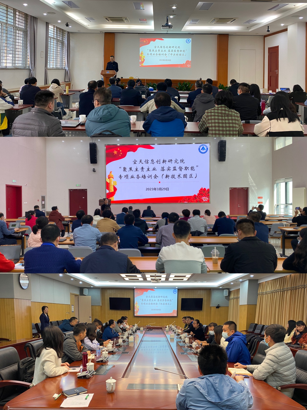 为深入学习贯彻落实党的二十大精神以及二十届中央纪委二次全会精神,增强党支部纪检委员履行监督责任意识,推动空天院党风廉政建设和反腐败工作不断向纵深发展向基层延伸,3月28日至30日,纪监审办公室分别在中关村园区、新技术园区和怀柔园区举办2023年度“聚焦主责主业 落实监督职能”纪检干部专项业务培训会,空天院纪委委员、院属各党支部书记、纪检委员、分支机构从事纪检监督职能的党员干部共计130余人参加培训。会议由纪委副书记、纪监审办公室主任刘秀芳主持,党委副书记、纪委书记赵刚出席会议并发表讲话。