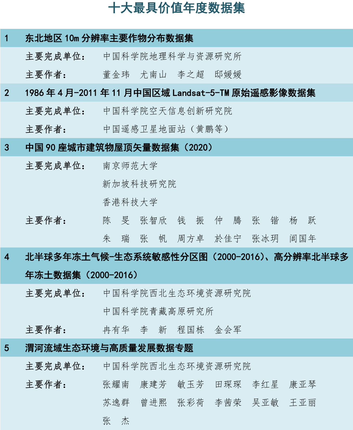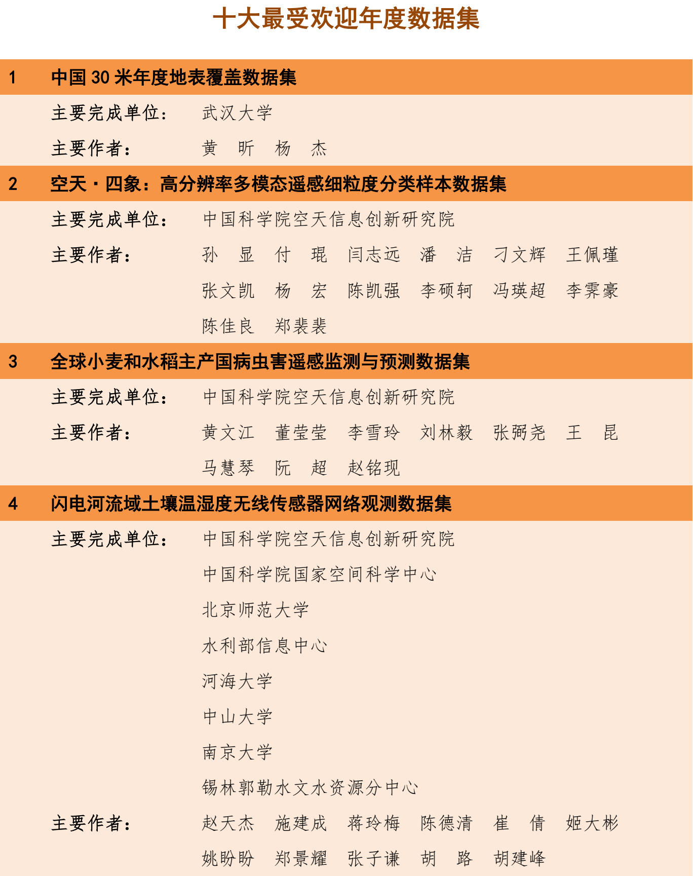近日,2022年度优秀共享开放遥感数据集征集活动发布最终评选结果。评选出《中国30米年度地表覆盖数据集》等10项数据集为“十大最受欢迎年度数据集”,《东北地区10m分辨率主要作物分布数据集》等10项数据集为“十大最具价值年度数据集”,中国科学院空天信息创新研究院等10个团队获“十大最有贡献的数据团队”,《长时序遥感工业热源数据集(2012-2021)》等37项数据集为“优秀数据集奖”。