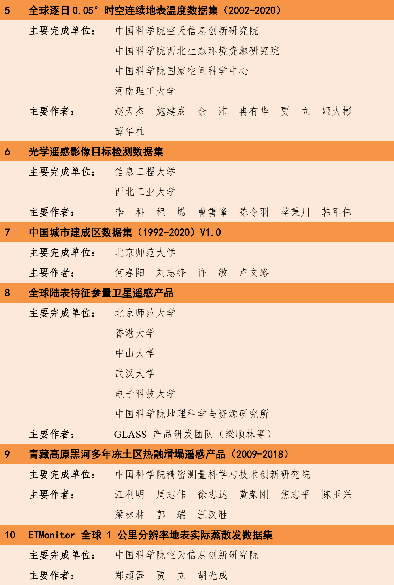自启动以来,受到广大科研人员的积极响应,最终收到了约110个团队投稿的170余件数据集作品。根据《优秀共享开放遥感数据集征集管理办法》规定,经作者投稿、信息审核确认、专家评审、内部公示等程序,最终评选出上述奖项及内容。