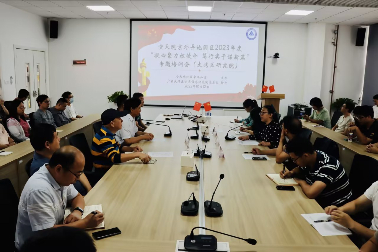 10月12日,中国科学院空天信息创新研究院(空天院)纪监审办公室在大湾区空天信息研究院(大湾区研究院)举办2023年度京外分园区“凝心聚力担使命 笃行实干谋新篇”专题培训会。旨在持续深入学习贯彻习近平新时代中国特色社会主义思想,结合中国科学院纪检干部教育整顿工作要求,达到科研诚信与科研业务警示教育“全覆盖”目标。