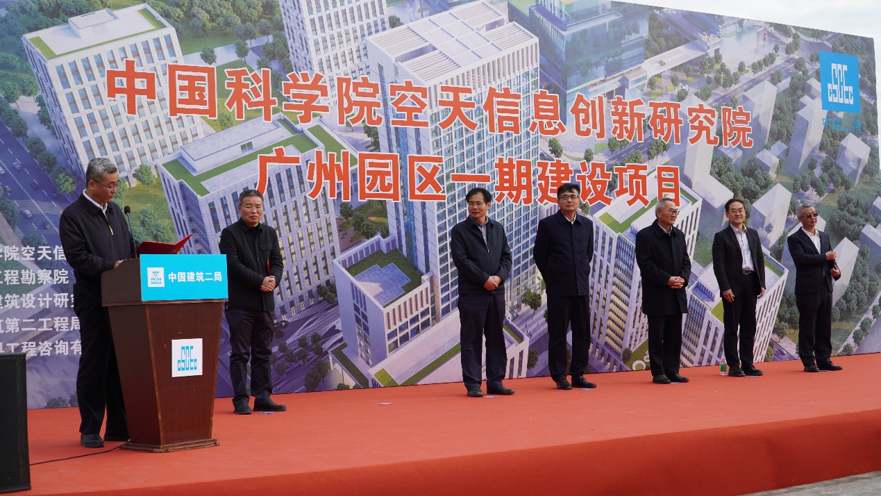 开工启动会上,空天院院长吴一戎、党委书记蔡榕、副院长张兵参会。来自广州市政府、黄埔区政府、开发区管委会及各职能部门,中国科学院广州分院,空天院,广东省工程勘察院,广东省建筑设计研究院集团股份有限公司,中国建筑第二工程局有限公司,江苏建科工程咨询有限公司等有关单位代表参加。