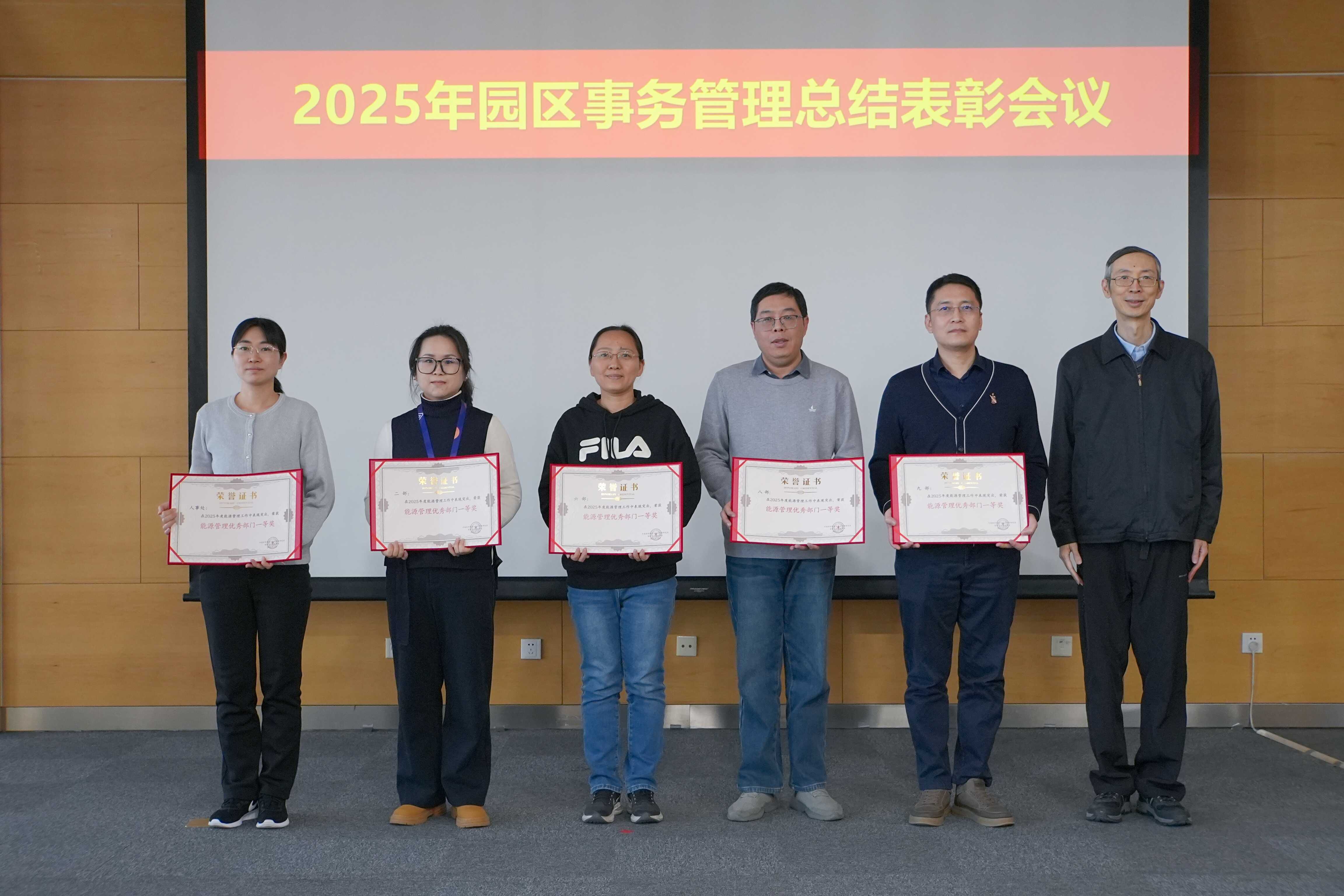 会议伊始,园区与后勤保障处作2025年度园区事务管理工作报告,全面梳理了过去一年在园区运维、能源管控、服务保障等方面的工作举措与成果。在表彰环节,会议对2025年度能源管理优秀部门和优秀园区事务管理员进行表彰。经前期严格评选,16个部门获评“能源管理优秀部门”,17名人员获评“优秀园区事务管理员”,与会领导为获奖集体和个人颁发证书。