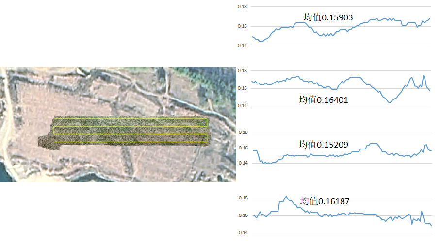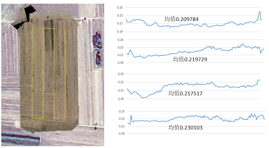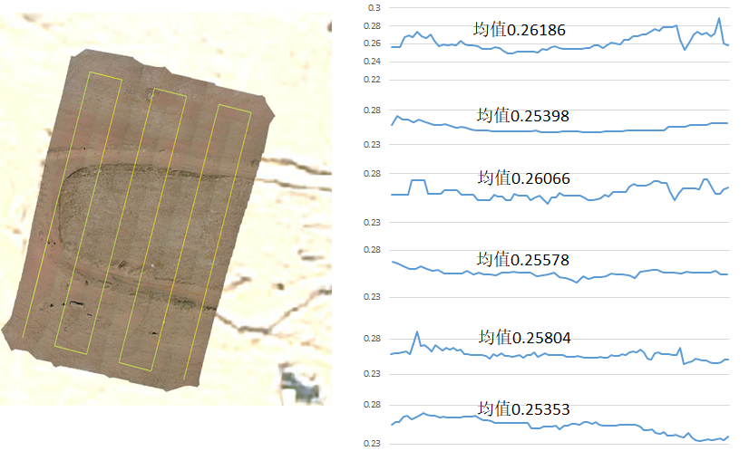 图2 裸土区域底图、彩色拼接图及反照率数据曲线