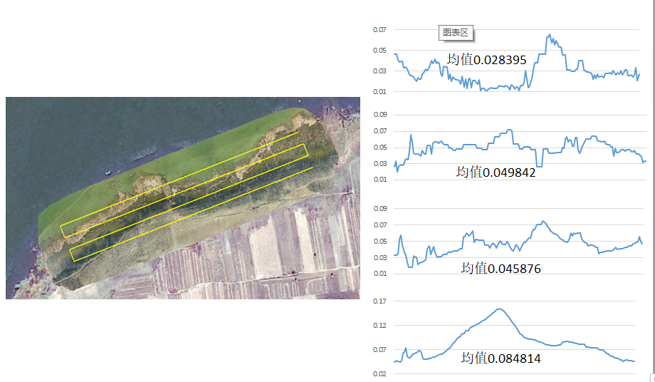 图6 湿地区域底图、彩色拼接图及反照率数据曲线