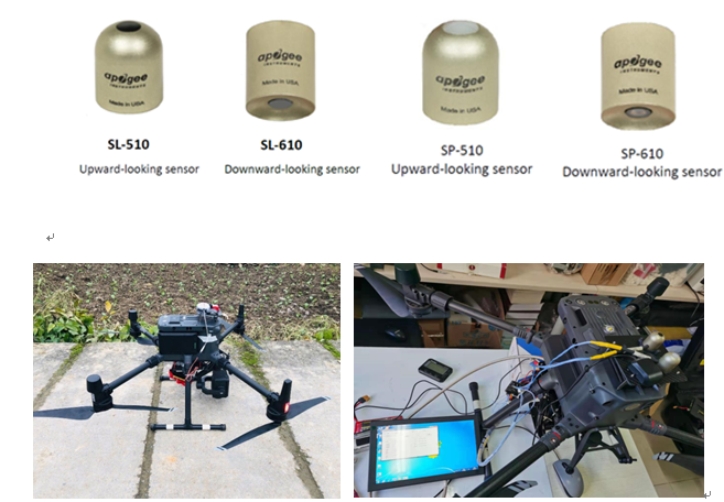 空天院所级中心遥感实验与评测平台设计集成了一套面向低空应用的四分量辐射探头系统。该系统利用电动旋翼无人机搭载4个辐射探头(短波长波各2个),获取典型区域代表性环境下太阳下行和地表上行的辐射值,从而可以计算出的该区域的正午地表反照率,为遥感数据反演和定量应用提供数据支持。