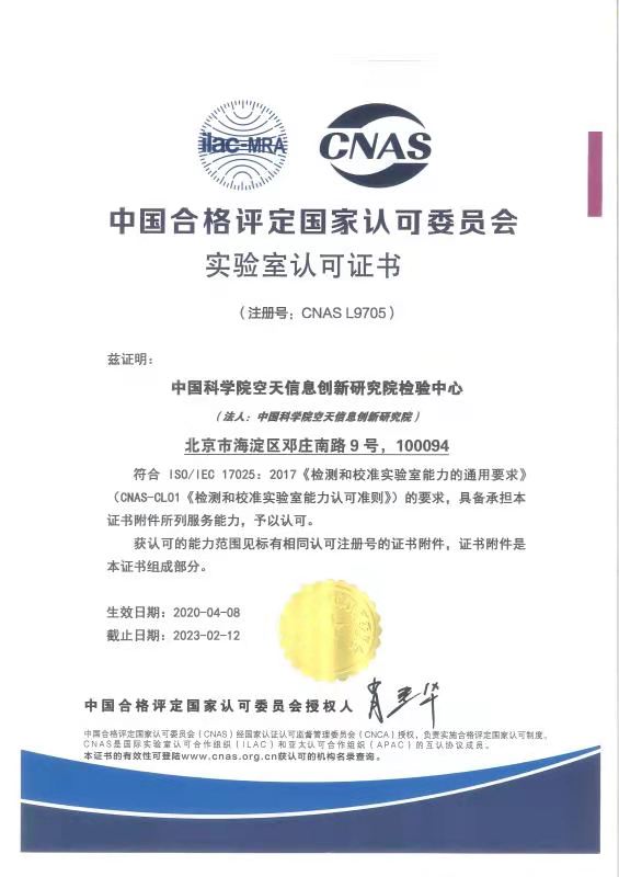 空天院所级中心遥感实验与评测平台光学定标实验室经过CNAS(中国合格评定国家认可委员会)委派的专家现场评审与线下审核,其中的可见光-近红外辐射定标能力及热红外辐射定标能力被纳入了CNAS认证中。此次认证通过标志着我单位光学定标实验室管理能力和检测水平的进一步提升,为开展权威性和专业性的光学定标服务奠定了坚实的基础,使我单位的光学定标实验室具备了按照相应认可准则对外开展检测和校准服务的技术能力。