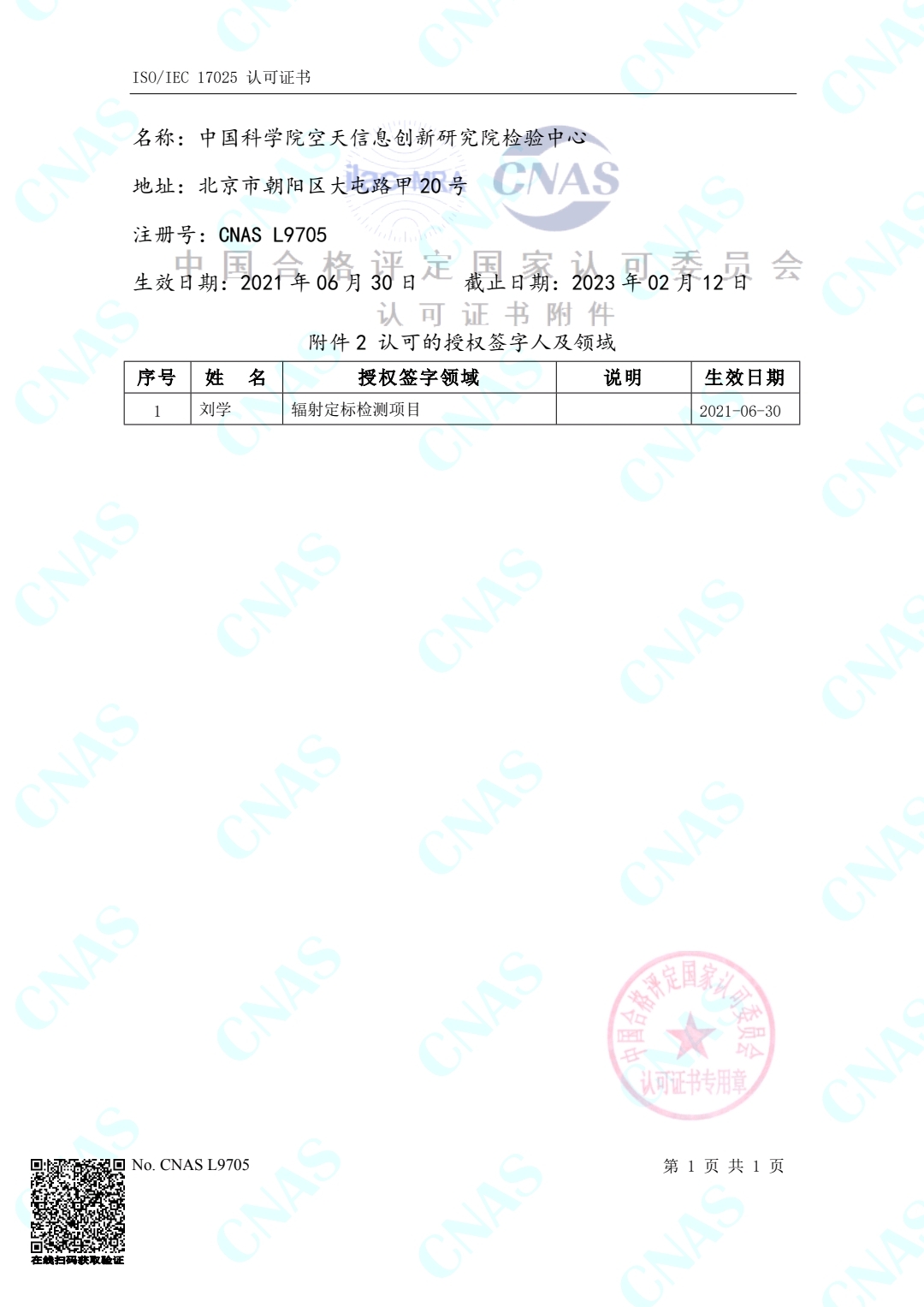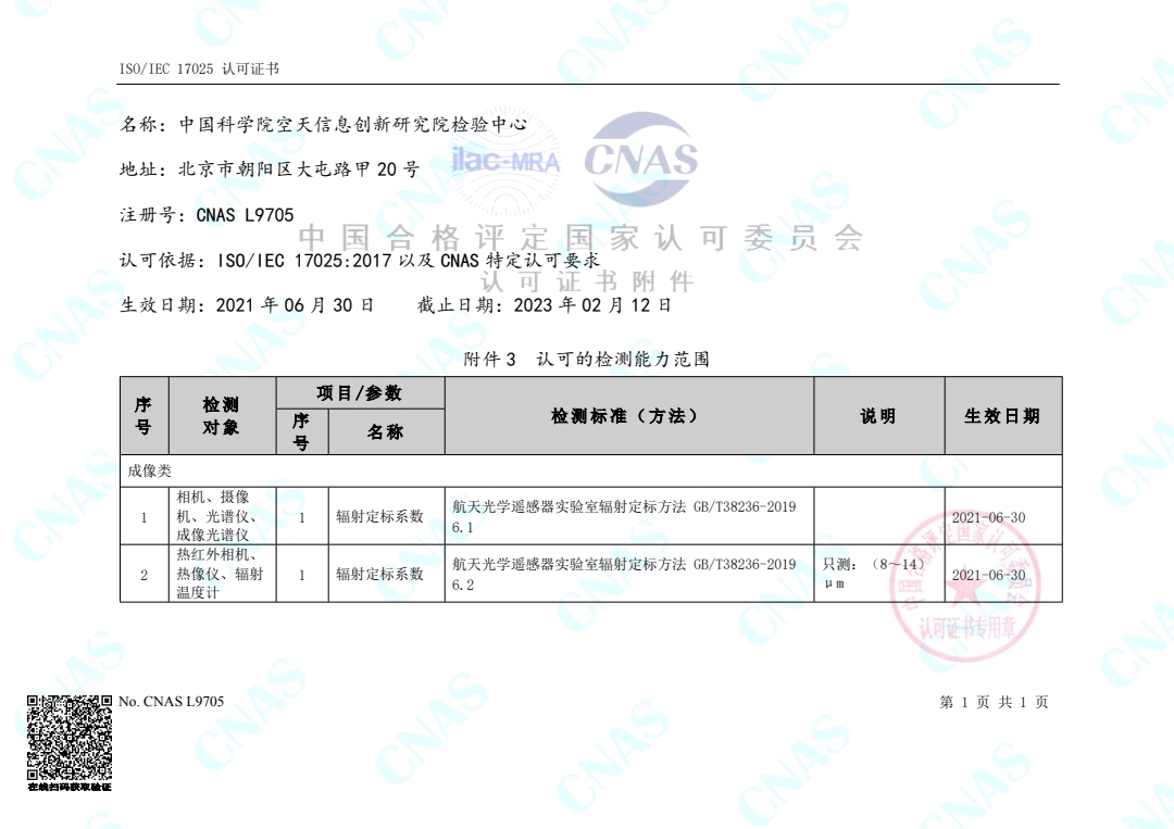 光学定标实验室的辐射定标获得CNAS认可,可以对外提供定标监测服务