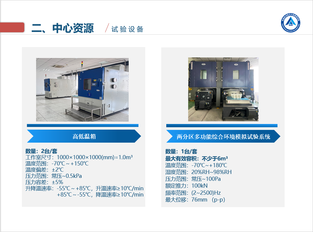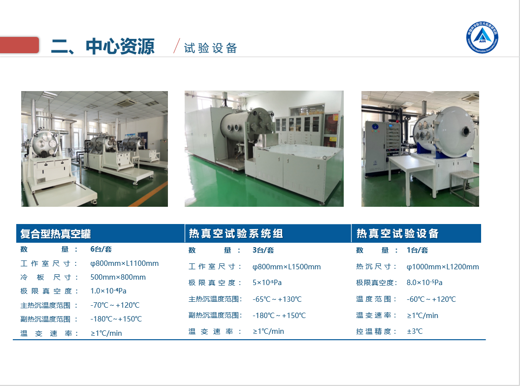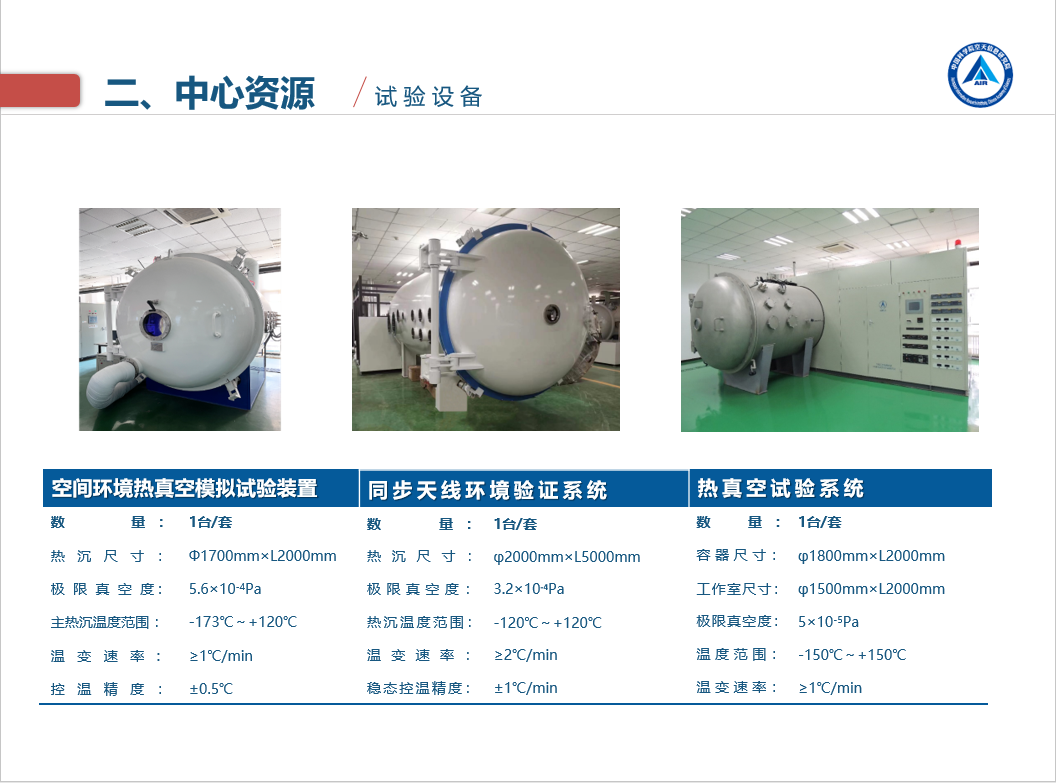 中心承担并完成了空天院内多项科研任务的环境模拟试验检测任务,同时还为中国科学院系统、各地高校以及社会其他科研机构提供了检验检测技术服务。例如,在空间领域,为星载分系统、单机、单板等开展一系列环境可靠性摸底、鉴定、验收试验;在临空领域,为飞艇、气球平台部件、组件、关键单机产品提供环境及可靠性试验;在航空领域,为航空重点型号单机提供环境筛选、可靠性试验方面的支撑保障,推动各型号项目的发展;在地面产品领域,为多项重点型号雷达提供气候、力学环境试验,保障科研生产活动顺利进行。