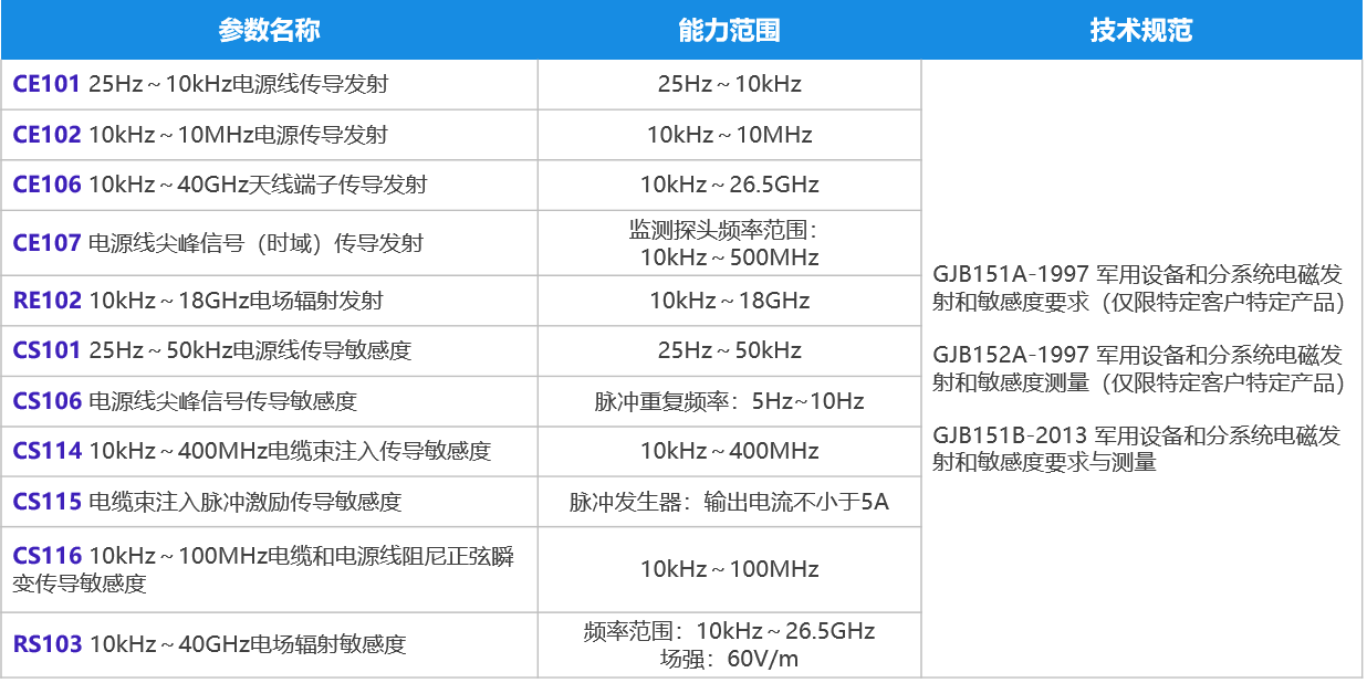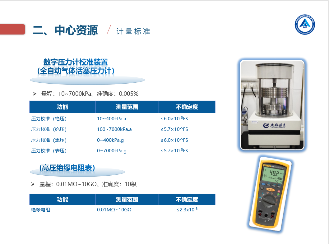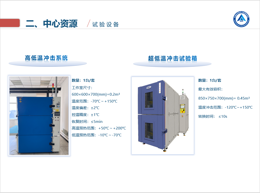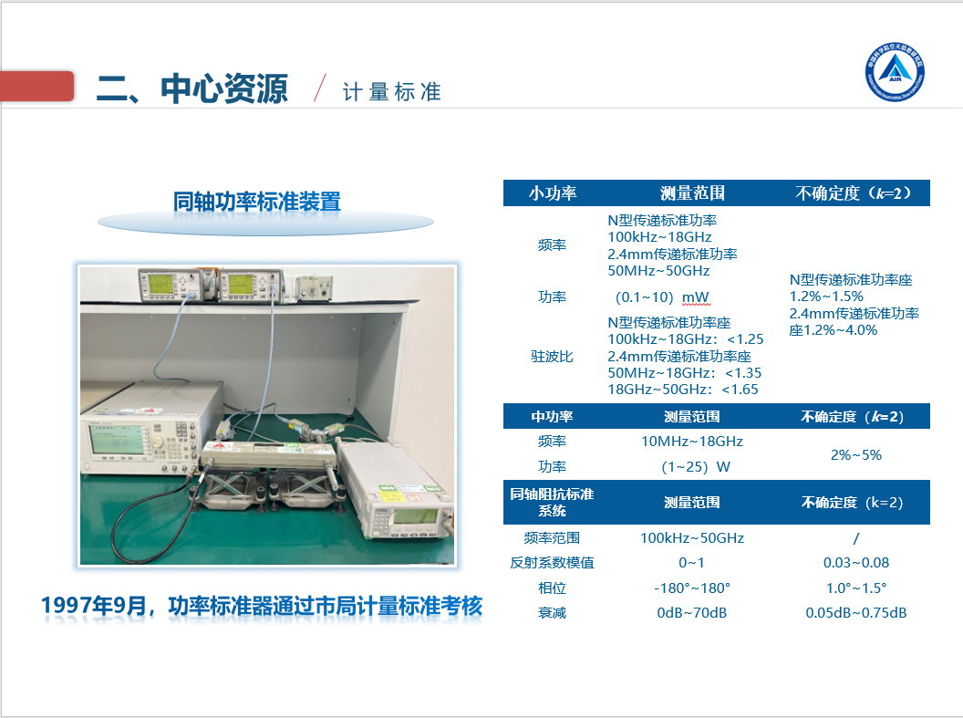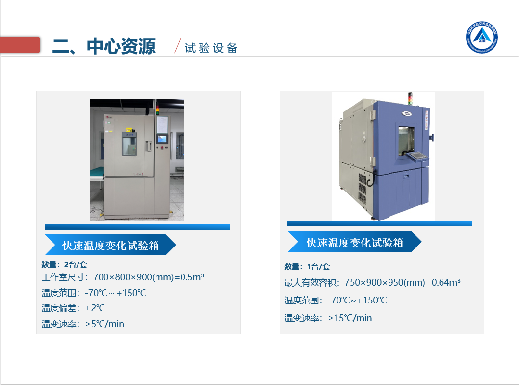中心拥有信号发生器校准装置、同轴功率标准装置、数字多用表校准装置、示波器校准装置、数字压力计校准装置等5项,能够承担信号发生器、数字多用表、示波器、功率传感器、数字压力计等校准业务;中心能够进行电工电子、运输包装件、航空航天、轨道交通等领域产品的环境模拟试验,具体包括低温试验、高温试验、温度改变试验、低气压试验、湿热试验、温度/高度试验、温度/湿度/振动综合试验、温度/湿度/高度综合试验、振动试验、冲击试验、跌落试验、加速度试验、环境应力筛选试验、可靠性试验、热真空试验等15项;中心拥有3米法半电波暗室,能够依据相关标准开展电磁兼容检测工作;中心参与起草了国家标准,并可据此开展电场传感器检测工作。