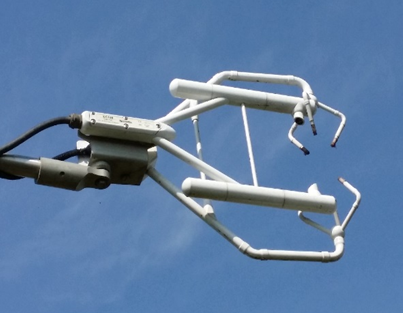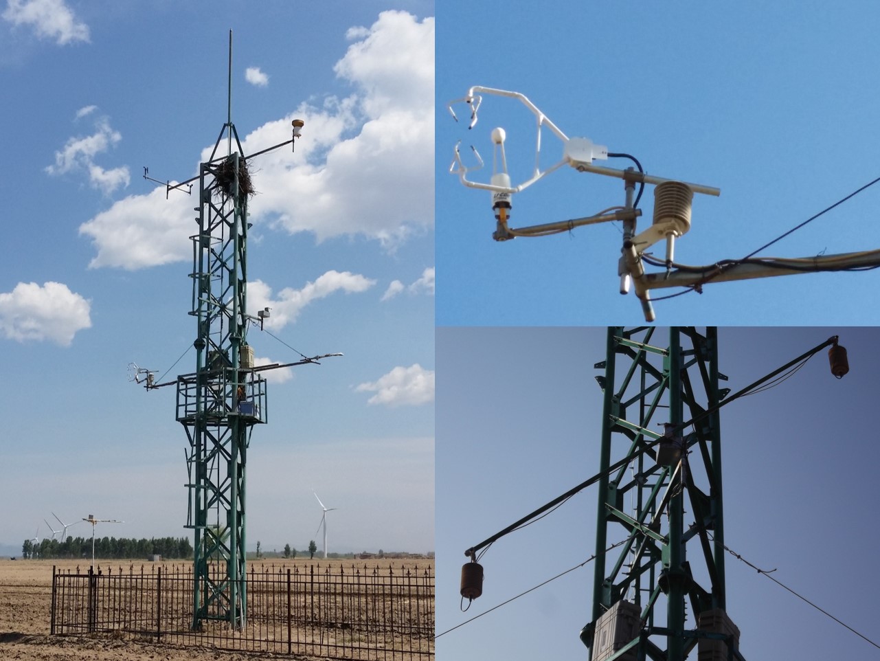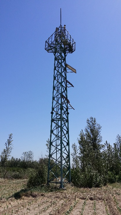 在40米和10米气象塔旁各有一套涡动相关仪(朝北),40m塔涡动相关仪架设高度为3.5m,10m塔涡动相关仪架设高度为5m,主要用于监测试验区旱地与水浇地下垫面农作物的蒸散量。