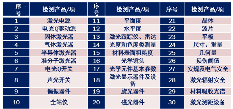 通过国家认证的检测项包括激光电源、激光产品、激光器件、光度色度、激光测量、激光产品安全等6类产品100余项,覆盖国内外大部分激光器件和激光器产品,促进我国新型激光产业的健康快速发展。