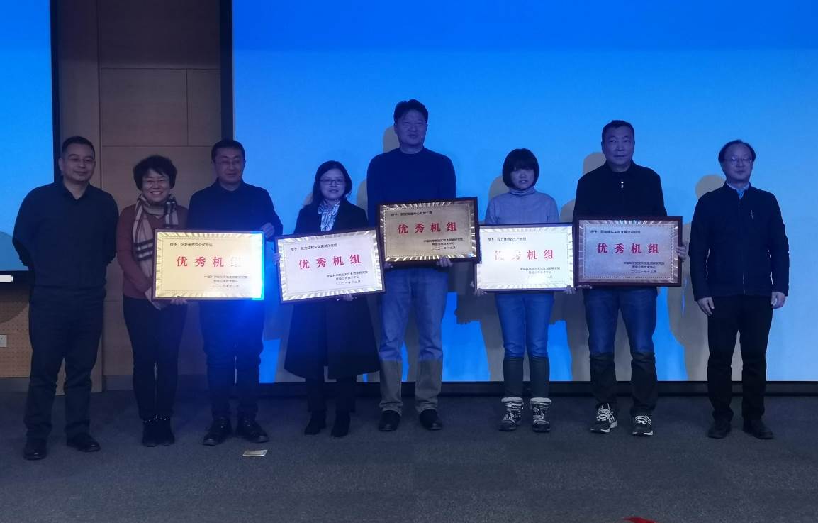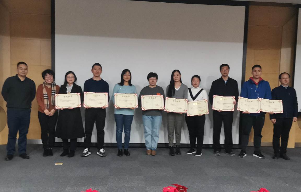 年度总结报告结束后,海涛书记、卫华处长、肖青主任为所级中心年度考核优秀集体、优秀个人获得者颁奖并合影。