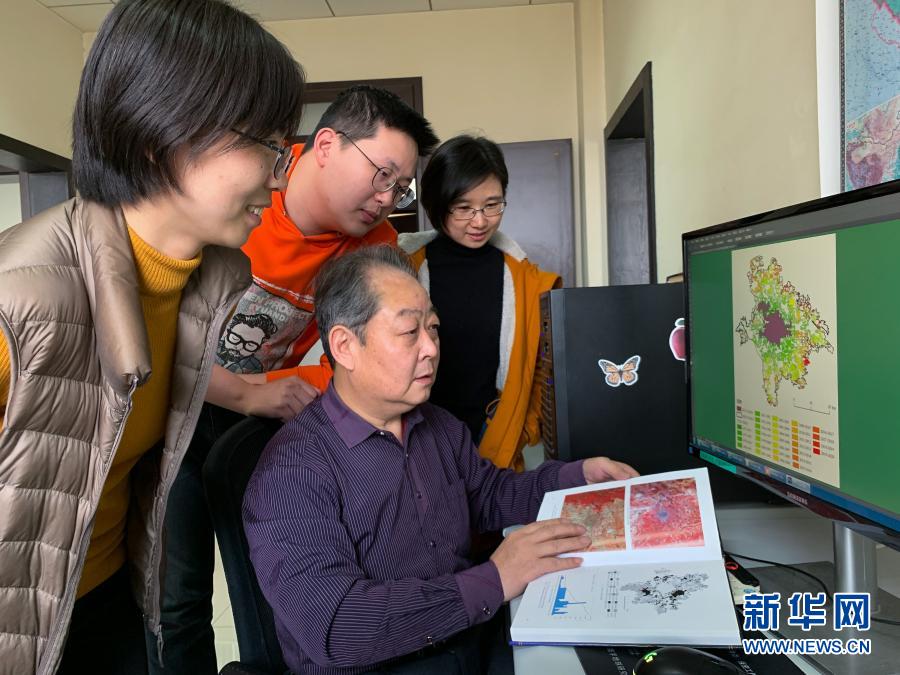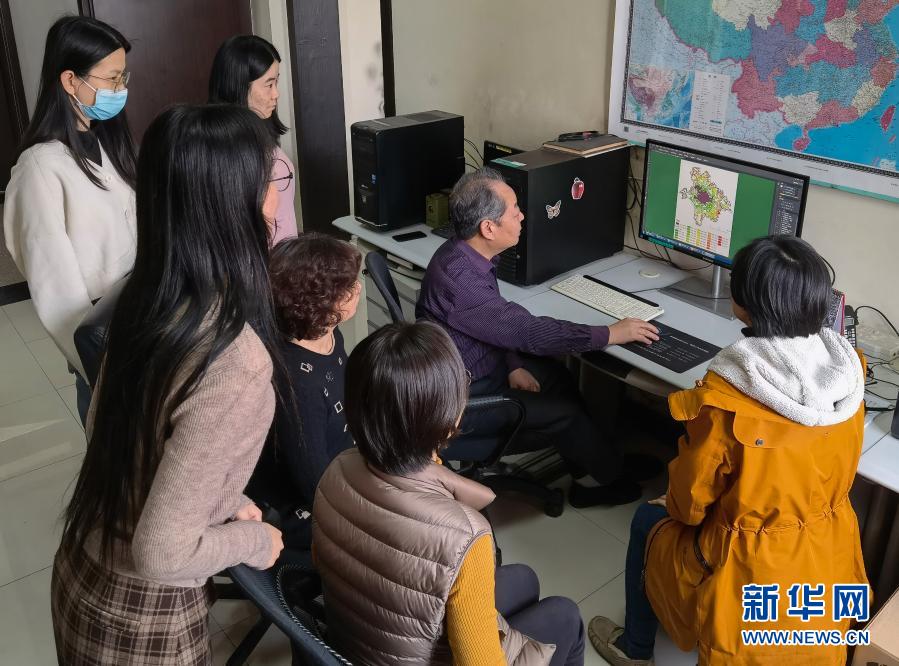 3月4日,在中国科学院空天信息创新研究院国家遥感应用工程技术研究中心,张增祥研究员(右二)和团队成员在讨论科研进展。