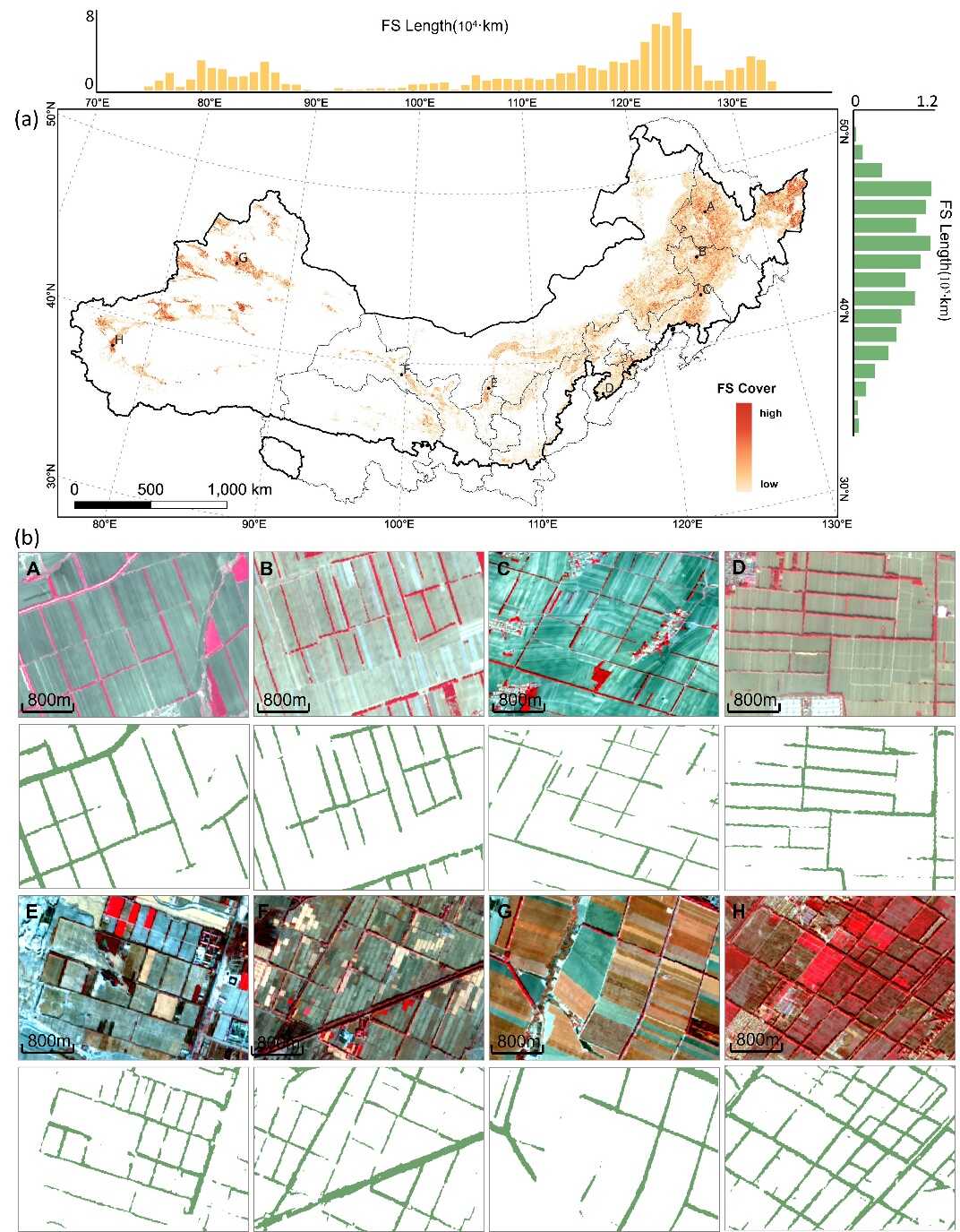 作为我国“三北”区域的重要组成部分,农田防护林(又称“防风林带”)在减少风蚀和防治土壤退化方面发挥着关键作用。然而,目前尚缺乏大范围的农田防护林产品,对其监测与优化带来了挑战。