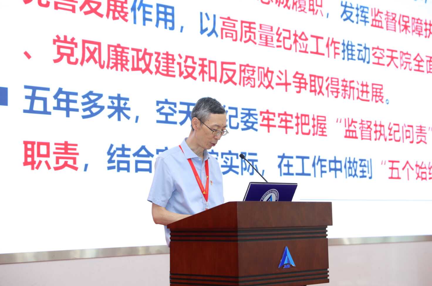 空天院党委副书记、纪委书记赵刚代表第一届纪委作工作报告
